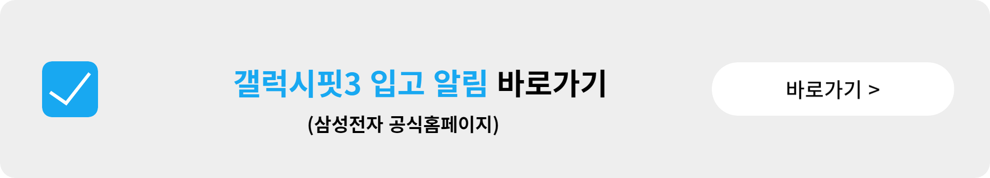 갤럭시 핏3는 출시 당일 삼성닷컴에서 서너시간 만에 품절되는 등 높은 인기를 자랑합니다. 갤럭시 핏3는 4/15일 월요일 오전 9시 재입고 예정입니다. 1만대 추가 공급 예정으로, 매진되기 전에 [삼성닷컴]에서 서둘러 구매하시기 바랍니다. 만약 품절된 경우, 재입고 알림을 통해 빠르게 구매할 수 있도록 도와드립니다.
