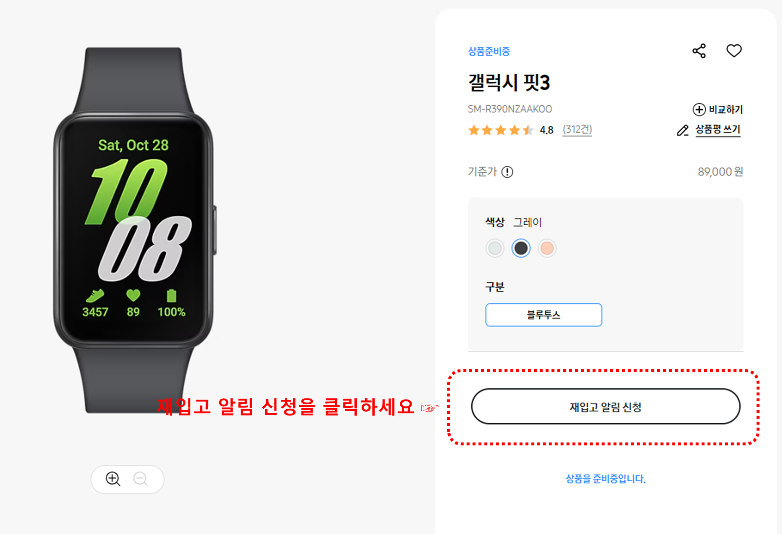 삼성전자는 이번주 1만대 추가 공급 예정 계획을 전했습니다. 아래 링크에서 재입고 소식과 함께 갤럭시핏3 즉시 구매하시기 바랍니다.