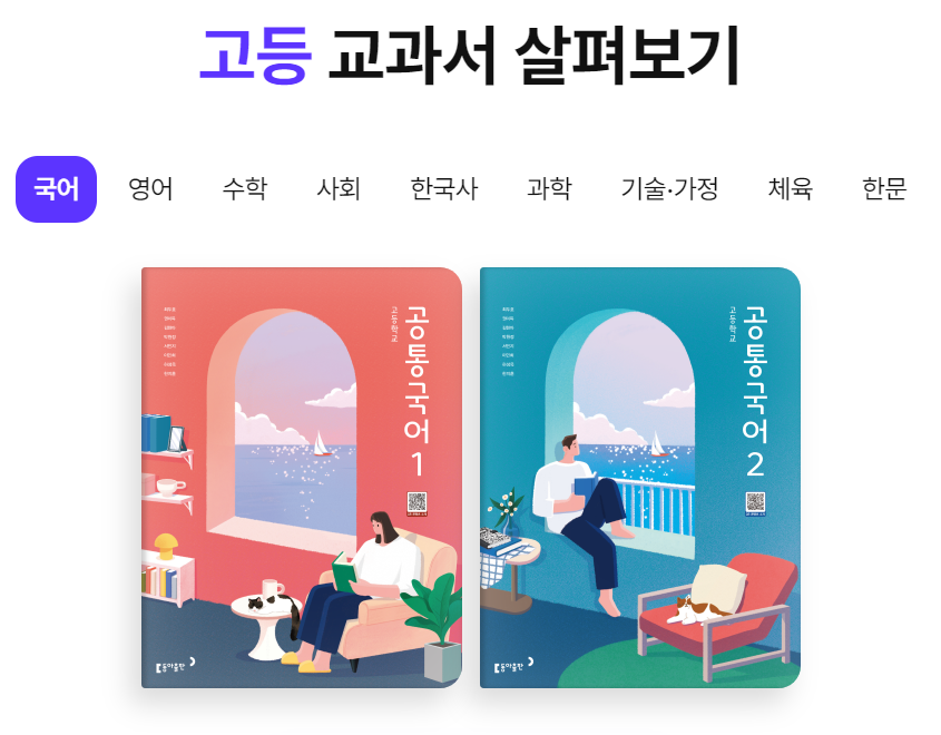 초등학교, 중학교, 고등학교 각 과정별로 제공되는 교과서를 확인합니다.