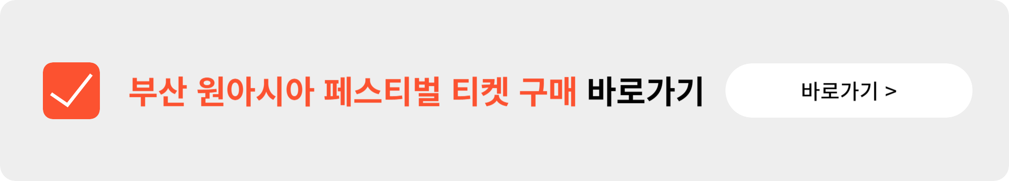 부산 원아시아 페스티벌 티켓팅은 4월 19일(금) 19시에 진행 예정입니다. 매우 빠르게 좌석이 매진되오니 서둘러 예매하시기 바랍니다.