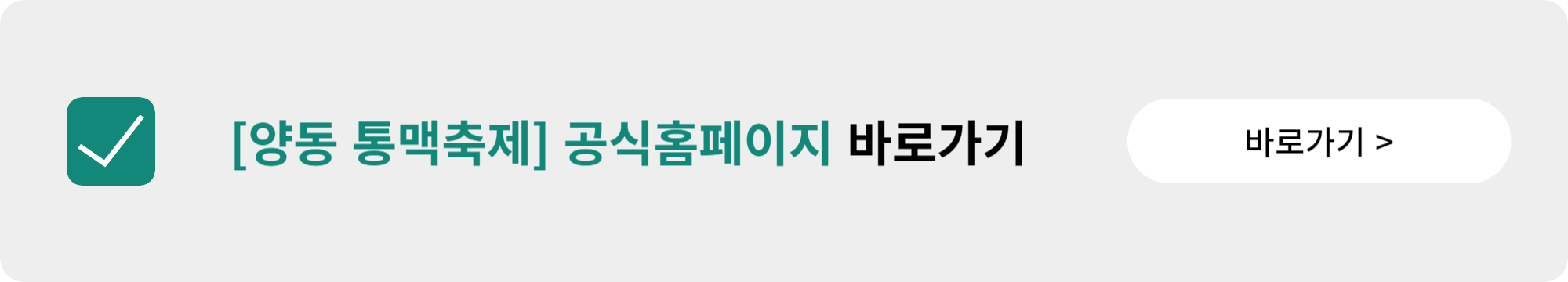 양동통맥축제는 올해 2회째를 맞이하고 있습니다. 행사기간은 4월 19일 부터 5월 4일까지로 매주 금/토 16시부터 22시까지 진행됩니다. 다양한 행사가 진행되오니 아래 공식홈페이지 접속하여 참고하시기 바랍니다.