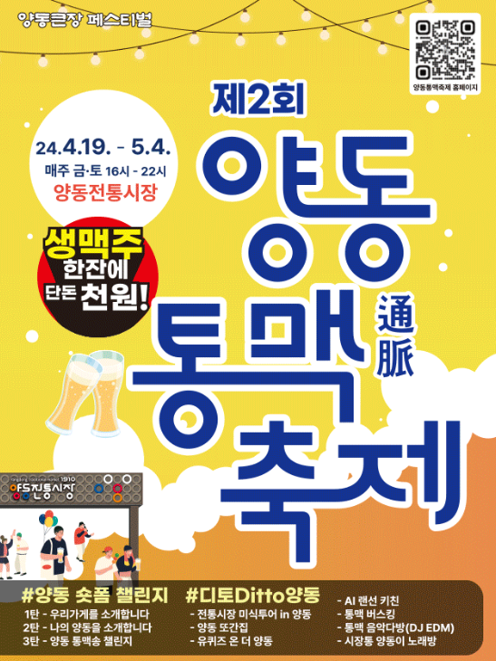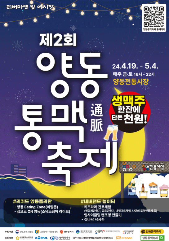 1. 메인프로그램 : 전통시장 미식투어 in 양동(개막식), 천원생맥주(일일한정 2024잔), 이팅존 운영