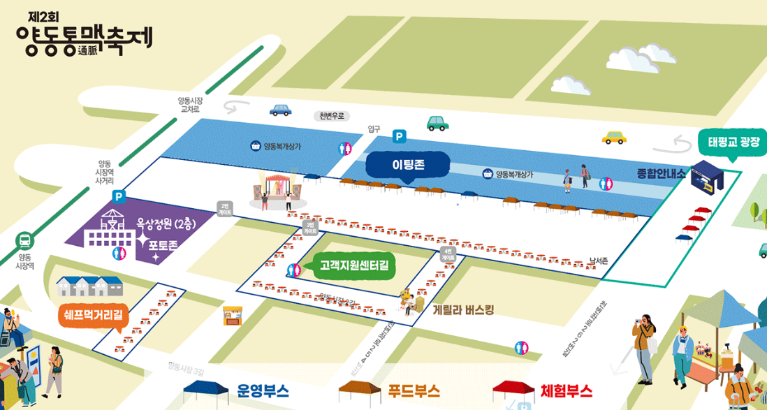양동통맥축제 일정 및 주차 안내드립니다. 올해로 2회차를 맞이하는 양동통맥축제는 양동전통시장에서 개최됩니다. 다양한 행사가 진행되오니 많은 관심 바랍니다.