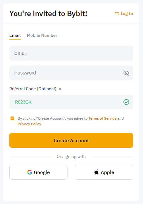 - Referral Code 입력합니다. (R623GK) * Referral Code 입력 시 거래 수수료 혜택을 받을 수 있습니다.